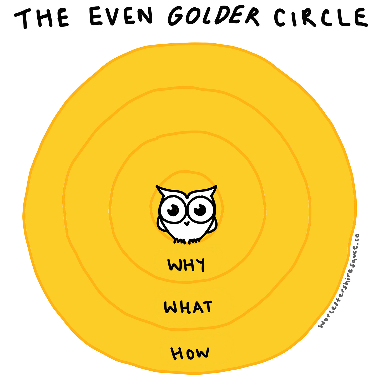 Meantime, print and frame the Even Golder Circle for quick indoctrination. Make nocturnal bird noises in your next strategy meeting. Share this to LinkedIn to offend people in the Always-Why-Starters religion.